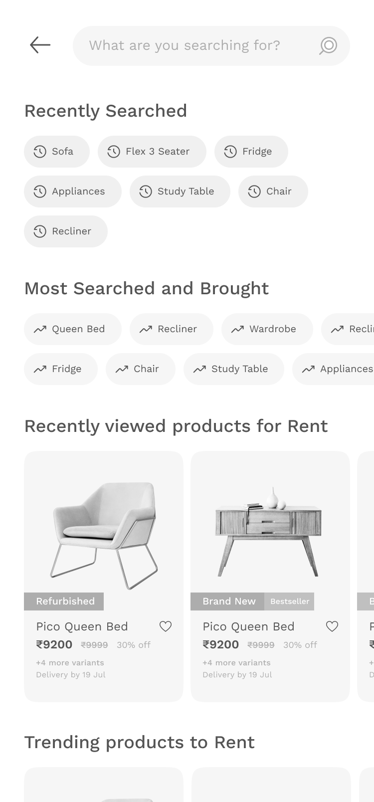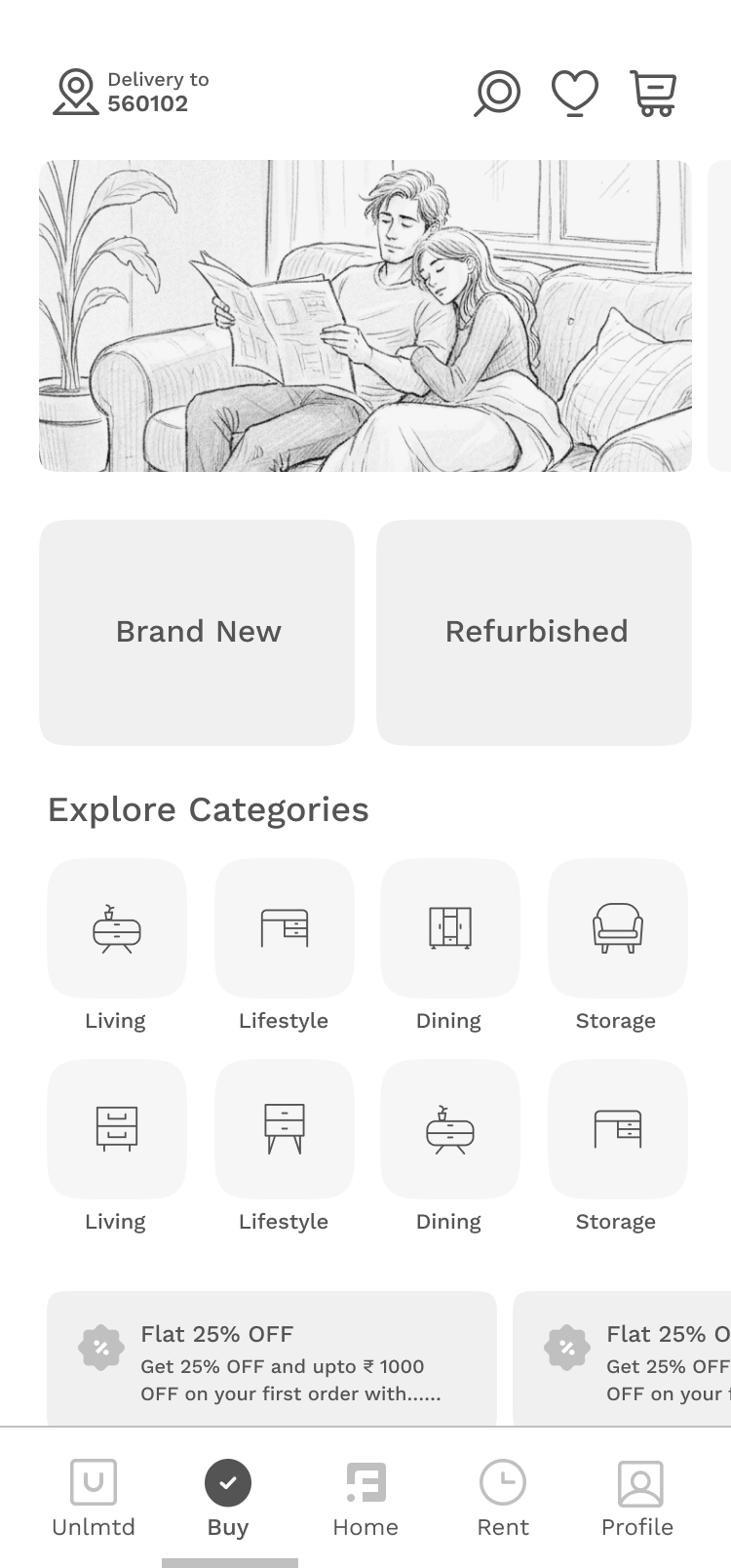 First, we structured the UI with layout services to ensure a clean, organized, and intuitive product discovery flow. This allowed users to navigate easily between buying and renting.