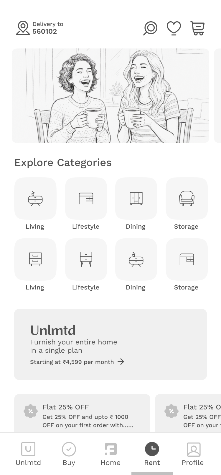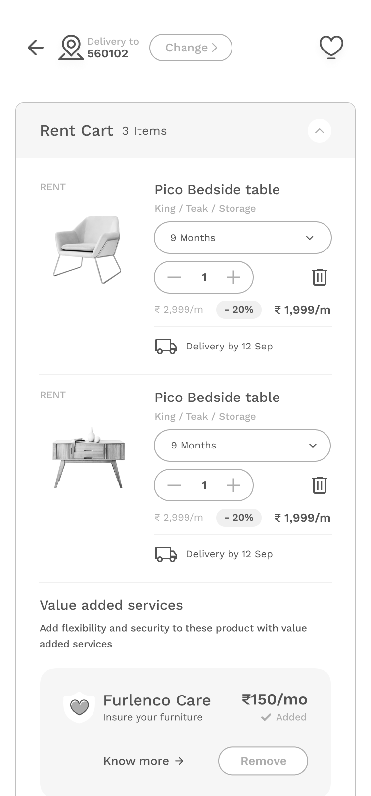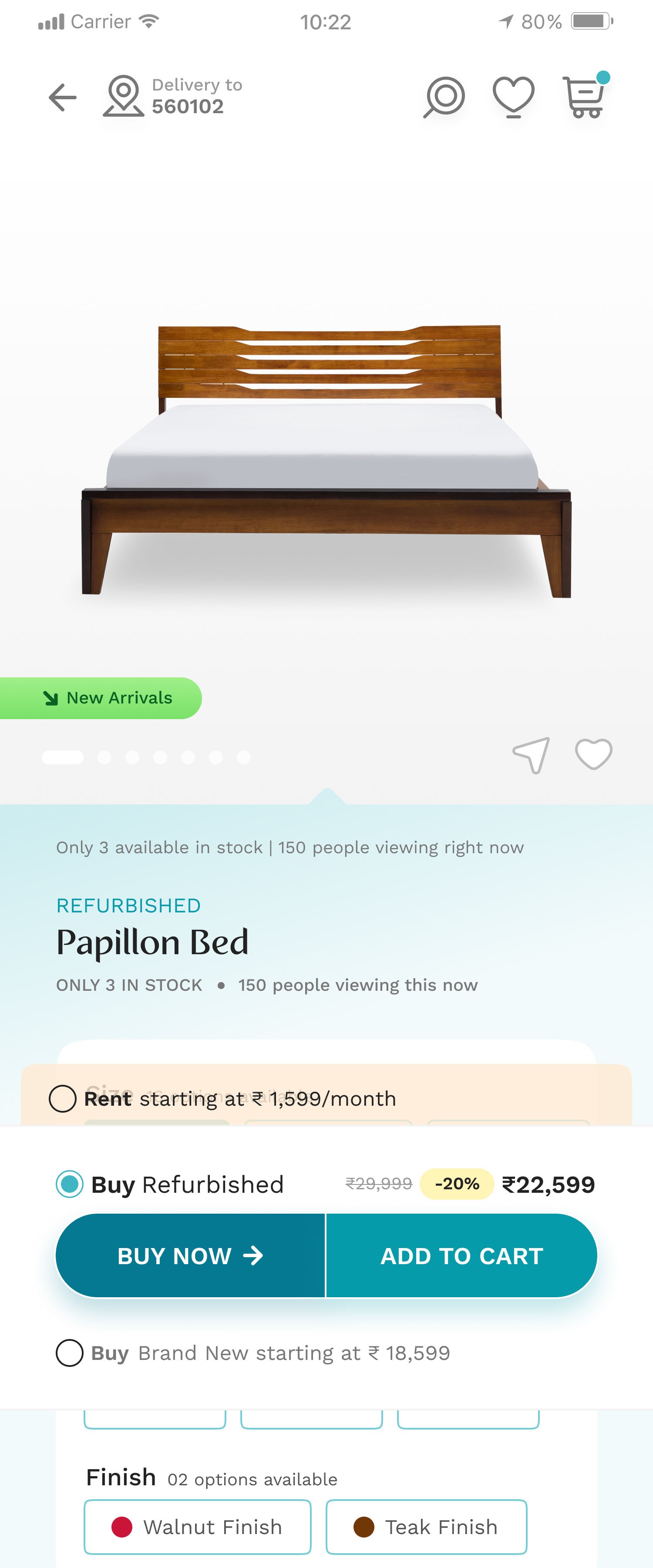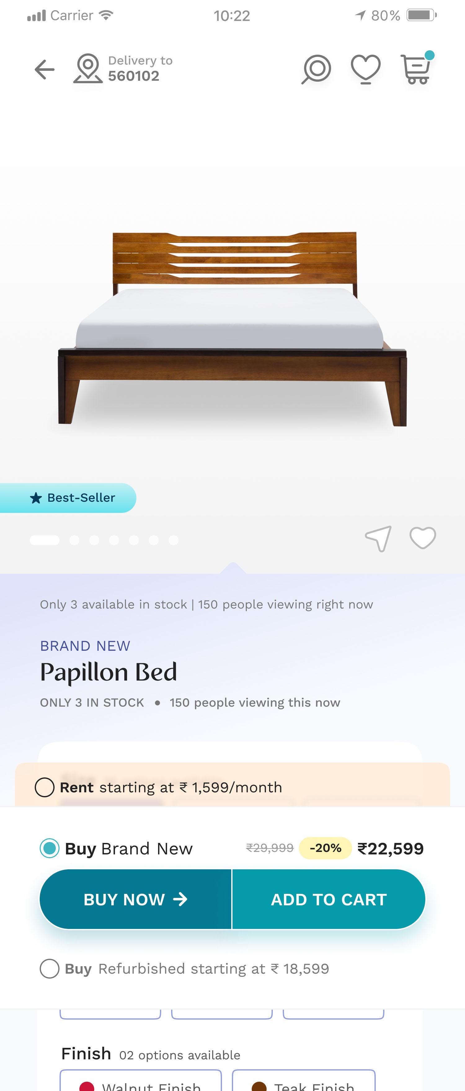 Consolidated Furlenco's distinct Rent and Buy models onto a unified Product Detail Page for the Furlenco 2.0 strategy. This simplified the user experience by showcasing flexible options without decision-making friction.